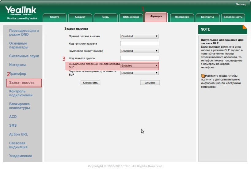 Для того, чтобы на ТА Шефа можно было видеть, кто на него звонит (чтобы понять, надо забирать вызов у секретаря или нет), необходимо на ТА включить "Визуальное оповещение для захвата BLF": Функции -> Захват вызова -> Визуальное оповещение для захвата BLF = Enabled.