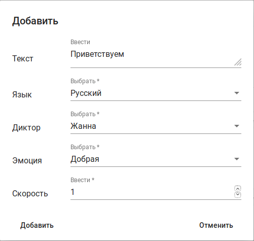 TTS — оповещение с пользованием Text to Speech: