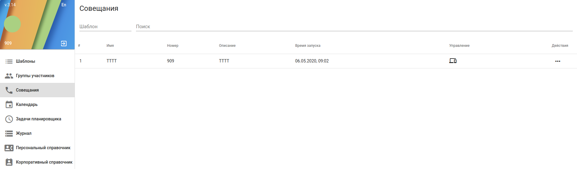 Во вкладке "Активные совещания" содержится информация об активных совещаниях: