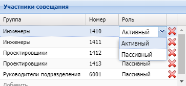 Для этого через приложение "Менеджер телеконференций" ("Telecoference manager") в web-конфигураторе, необходимо выставить роль "Активный" у соответствующего абонента: