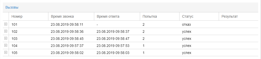 В случае если звонок не удался или продлился менее 5 секунд необходимо произвести повторный звонок не менее чем через 30 минут.