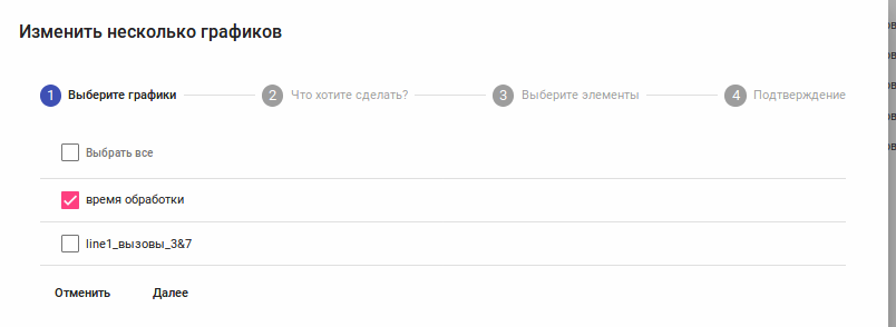 Для того, чтобы изменить настройки сразу нескольких графиков нужно нажать на кнопку "Изменить несколько графиков" .