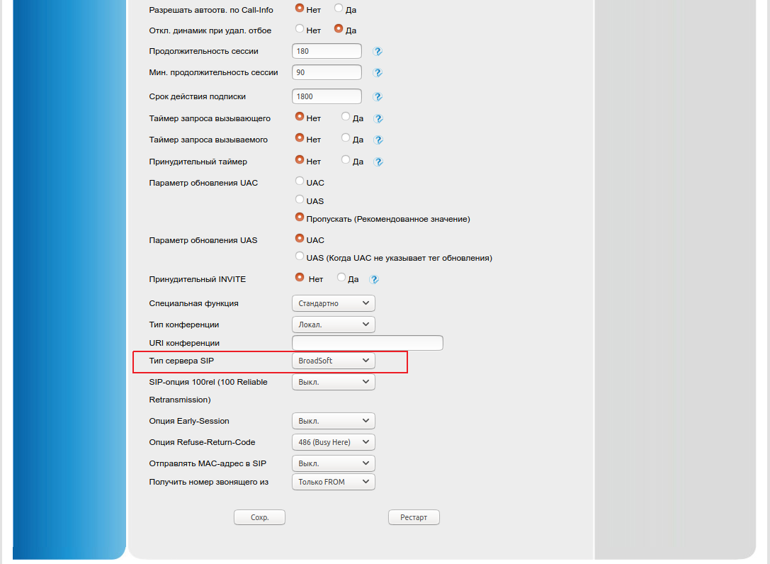 "Identity" -> "SIP" -> "Server Type Support" -> Broadsoft