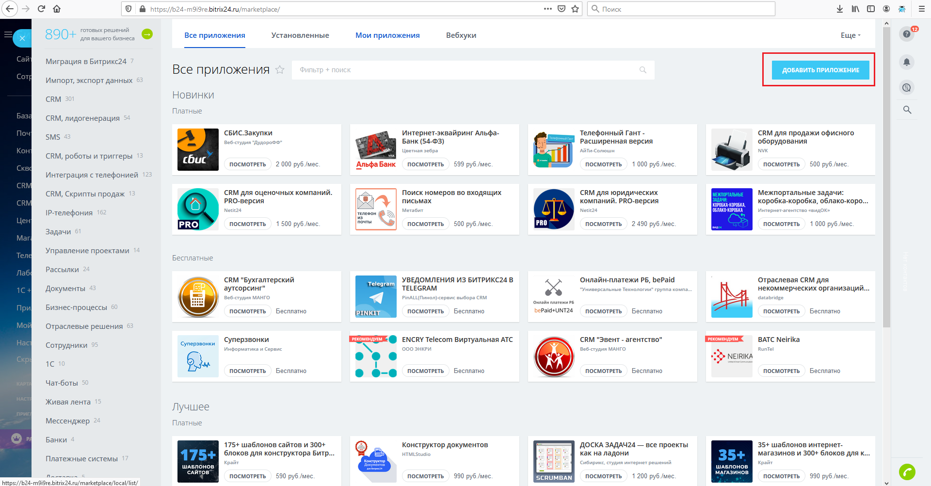 Интеграция Битрикс-24 не устанавливается из магазина приложений и может быть установлена только вручную.