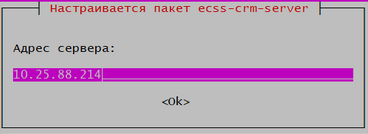 Укажите адрес сервера, на котором будет запущен ecss-crm-server. По умолчанию предлагается 127.0.0.1.