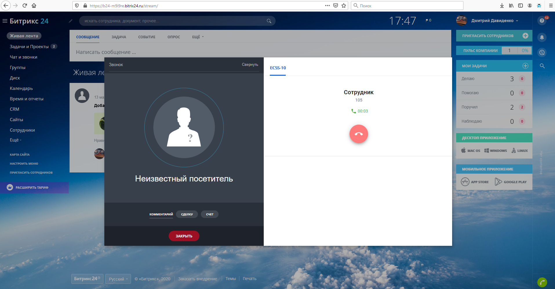 В разделе приведено описание настроек взаимодействия ECSS-10 c системой для ведения проектов, работы с клиентами и настройки бизнес-процессов — CRM Битрикс-24.