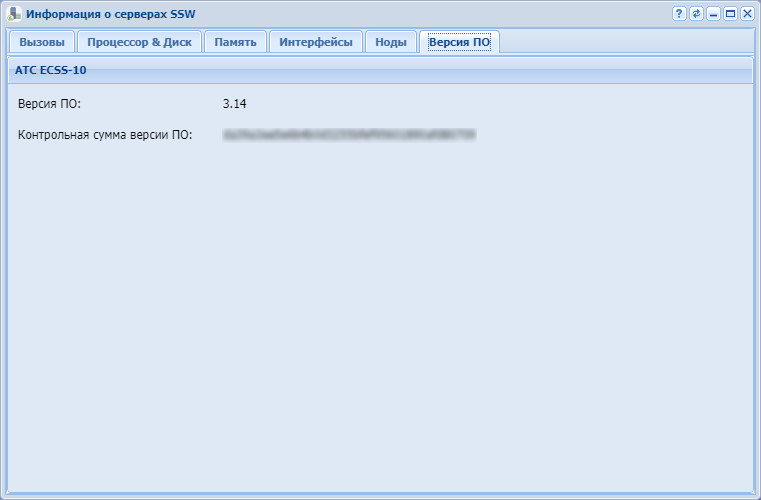 Рисунок 6 — Интерфейс приложения "Информация о серверах SSW" ("SSW hosts info"), вкладка "Версия ПО" ("Software version")