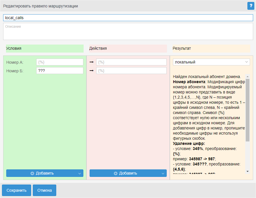 - Имя (Name) — имя контекста маршрутизации, должно быть уникальным в рамках виртуальной АТС;