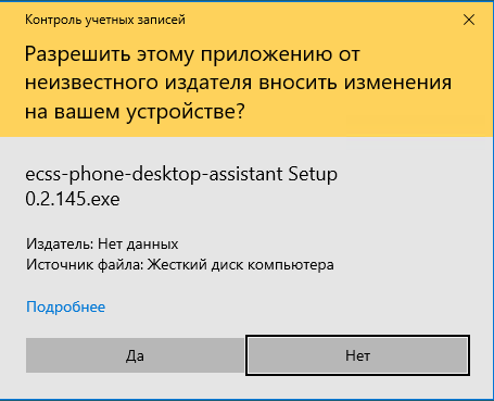1. Необходимо запустить ecss-phone-desktop-assistant Setup <version>.exe: