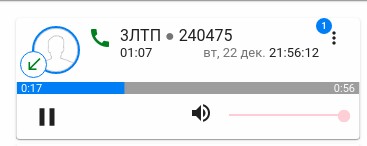 Передвижением ползунка прогресса можно прослушать любую часть разговора. Доступен также регулятор громкости воспроизведения.