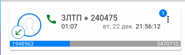 • Прием входящего вызова, в свернутом положении — всплывающее окно с возможностью принять/отменить вызов;