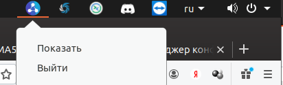При закрытии окно приложения сворачивается в системный трей, при клике выводится контекстное меню с выбором, показать или закрыть приложение:
