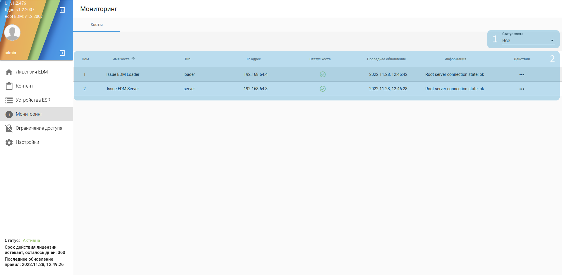 Раздел "Мониторинг" содержит информацию о компонентах EDM Issue. Общий вид раздела представлен на рисунке 13:
