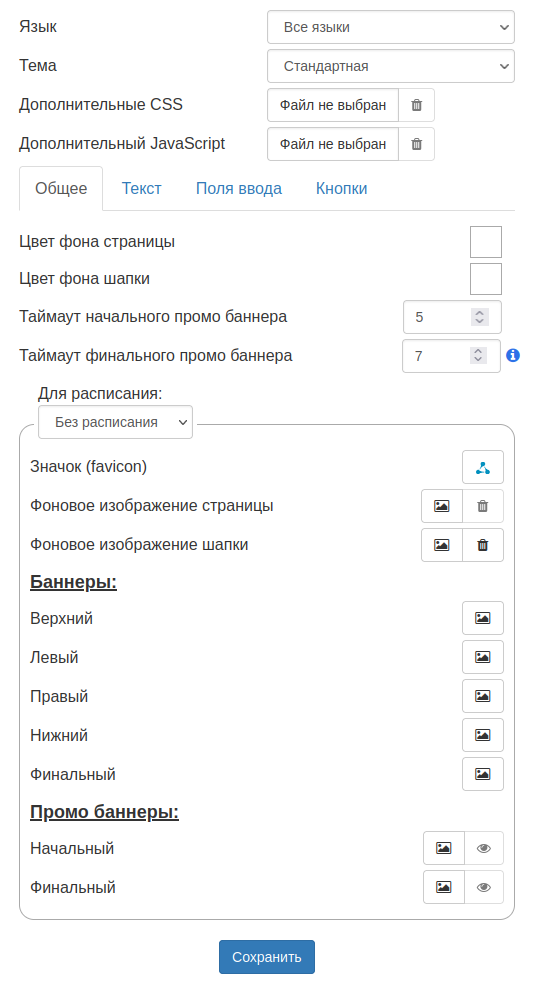 Функция выбора отображения портала из готовых тем.