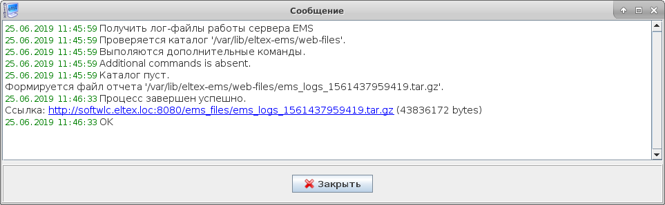 14-06-2017 	15:45:01: EMS status: Eltex.EMS Server is running with pid 30258