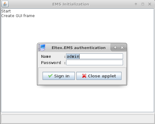 1.2. Для авторизации на EMS сервере введите логин «admin» без пароля.