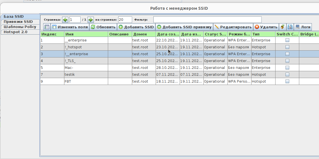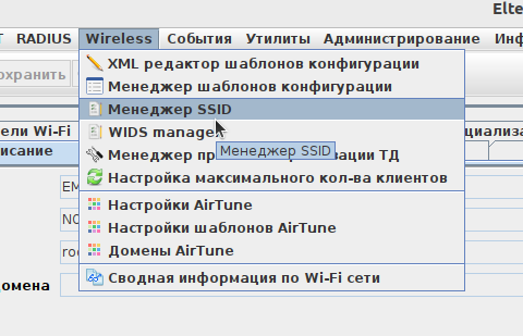 Откройте менеджер SSID в меню "Wireless/Менеджер SSID".