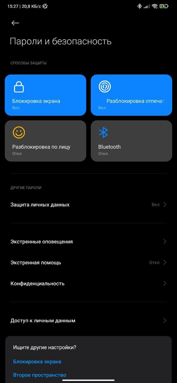 После того как Вы скопировали содержимое архива на клиентское устройство, зайдите в настройки и выберите пункт "Пароли и безопасность".