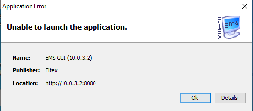 В EMS, когда приложение уже установлено на desktop пользователя, неответ tomcat'а выглядит как Unable to launch application: