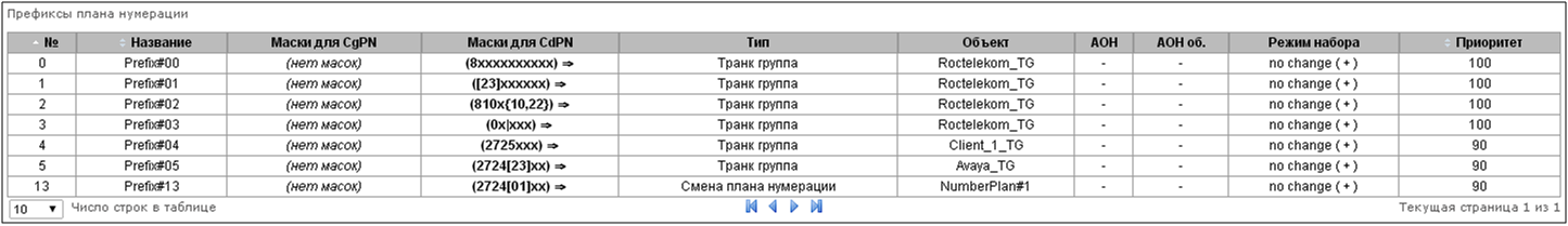 После этого идет сравнение полученного номера, типа и признака с префиксами CdPN нулевого плана нумерации. Признак префикса определяется по параметру «направление»: