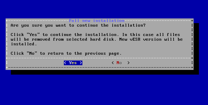 Шаг 4. В случае если на каком-либо этапе была допущена ошибка, возможно вернуться на предыдущие страницы, выбрав <No>. Если ошибок допущено не было, можно продолжить установку vESR, выбрав <Yes>: