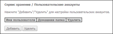 В данном меню происходит настройка учетных записей пользователей Samba.