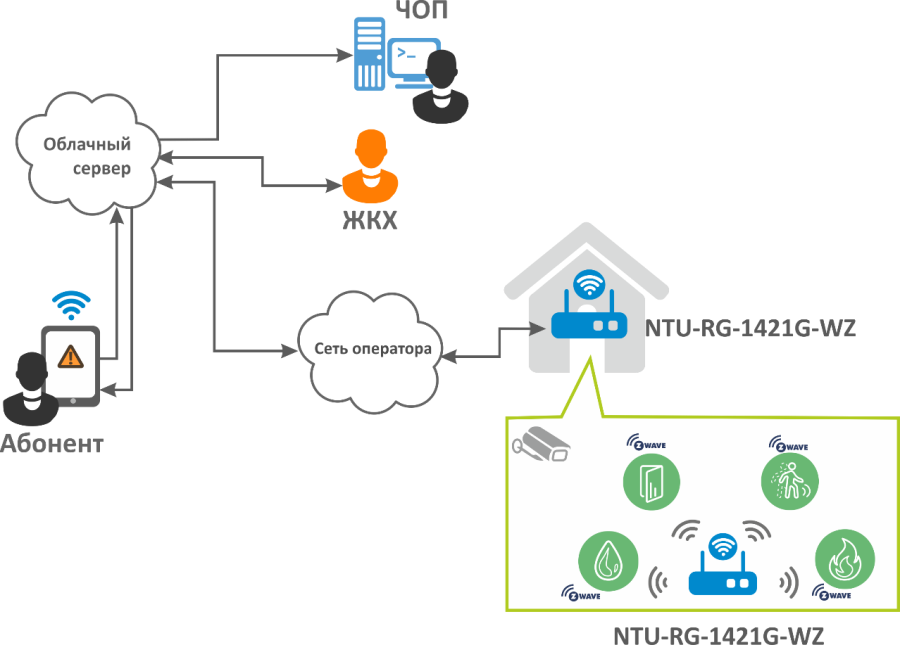 Устройство NTU-RG-1421G-WZ в своей комплектации имеет субмодуль Z-Wave, который используется для предоставления услуги "Умный дом".