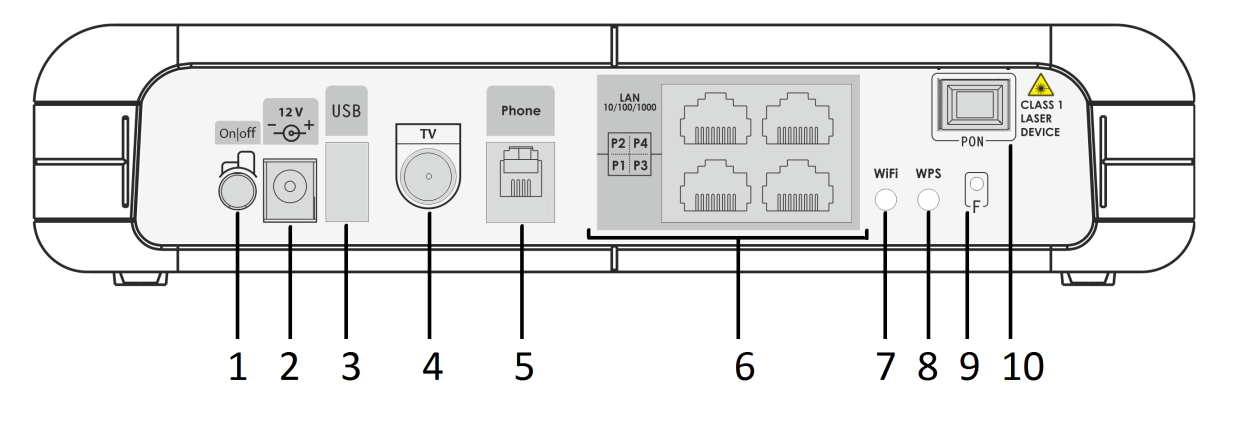 • 1 порт PON SC/APC для подключения к сети оператора;