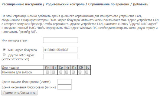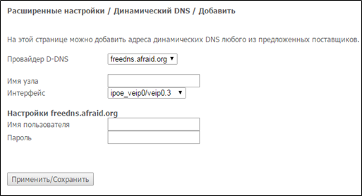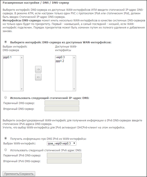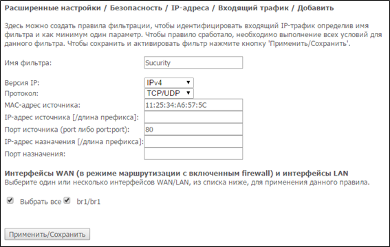 Для принятия изменений и сохранения необходимо нажать кнопку «Применить/Сохранить».