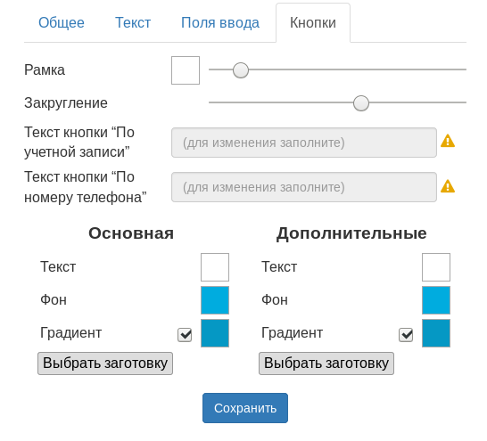 - Выбрать заготовку - выбрать заранее заготовленные шаблоны цветового оформления кнопок