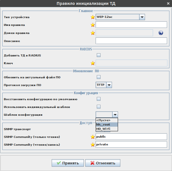 После этого, при инициализации новых точек доступа, на них будет установлена конфигурация из шаблона.