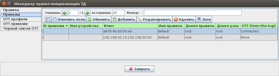 Созданная привязка отобразится в менеджере правил инициализации ТД.