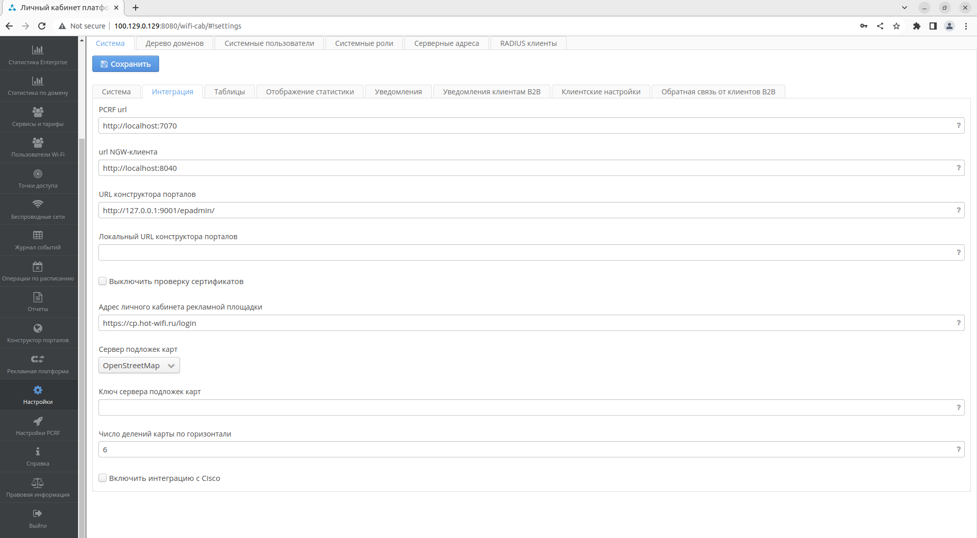 Перейти “Настройки” → “Интеграция”. Установить чекбокс “Включить интеграцию с Cisco” и нажать “Сохранить”