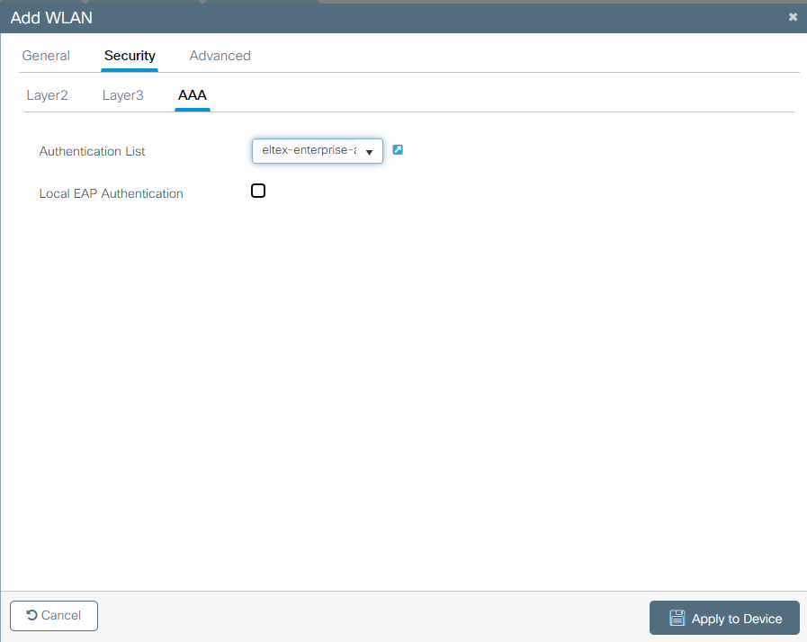 • Перейти в раздел "Configuration" → "Security" → "AAA" → "AAA Method List" → "Authentication"