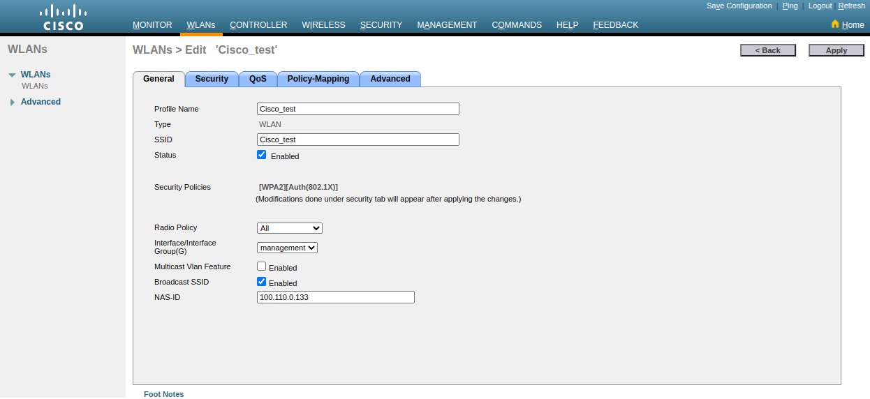 2. Настройка CiscoWLC AIR-CT3504 для работы с SoftWLC