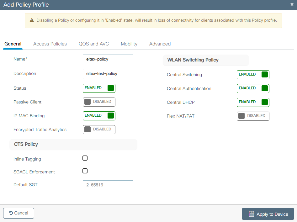 Группа Policy Tags для WLAN необходима для обозначения групп SSID. Определяет какие SSID на какие ТД будут назначены.