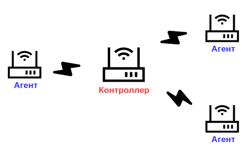 Для увеличения площади покрытия Wi-Fi к одному контроллеру допускается подключение нескольких агентов по схеме "Звезда":