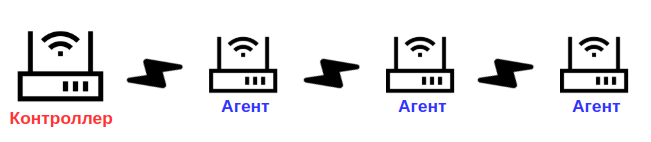 Рисунок 6. Объединение устройств в EasyMesh-сеть с последовательным подключением агентов