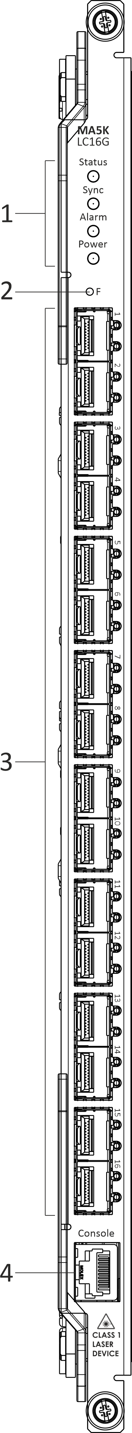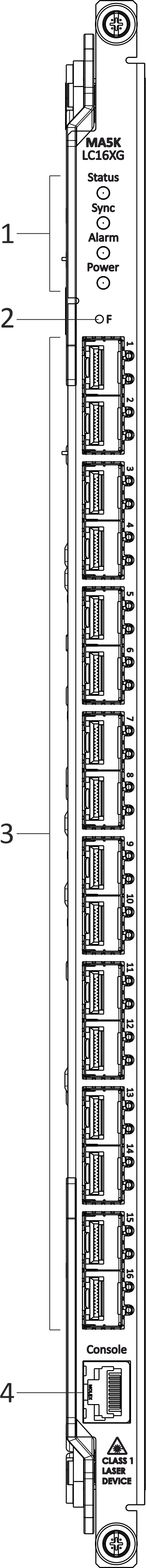 Шаг 2. Извлечь все SFP-трансиверы из модуля MA5K-LC16. Процедура извлечения SFP-трансиверов подробно рассмотрена в разделе Замена SFP-трансиверов.