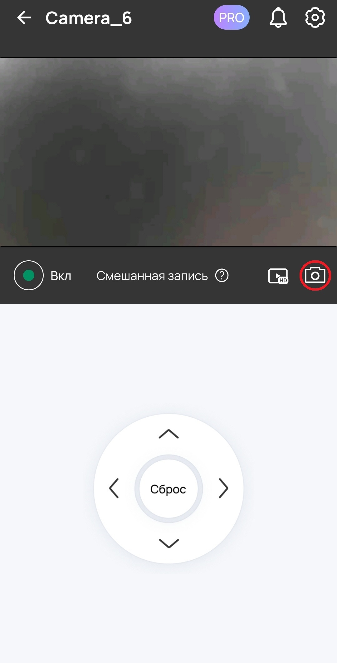 Под изображением с камеры расположены элементы управления. Нажмите кнопку отмеченную на скриншоте ниже.