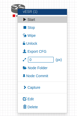 Шаг 7. Запуск ноды и определение Telnet-порта, по которому будет выполняться подключение к vESR. Выберите ноду, нажмите "Start":