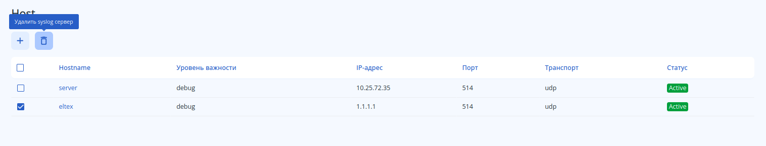 Для создания нового сервера используйте кнопку «Создать syslog-сервер».