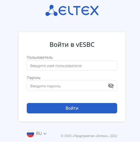 4. Введите в адресной строке браузера IP-адрес устройства. Для перехода в web-интерфейс можно использовать URL: http://<ip-address_esbc> или https://<ip-address_esbc>. При успешном обнаружении контроллера в окне браузера отобразится страница авторизации.