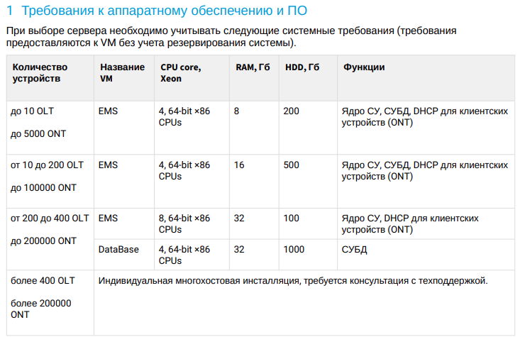 Системные требования EMS: