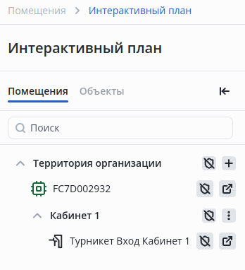 После этого на странице Интерактивный план отобразится Реле 1 с названием Турникет Вход Кабинет 1, которое управляет турникетом.
