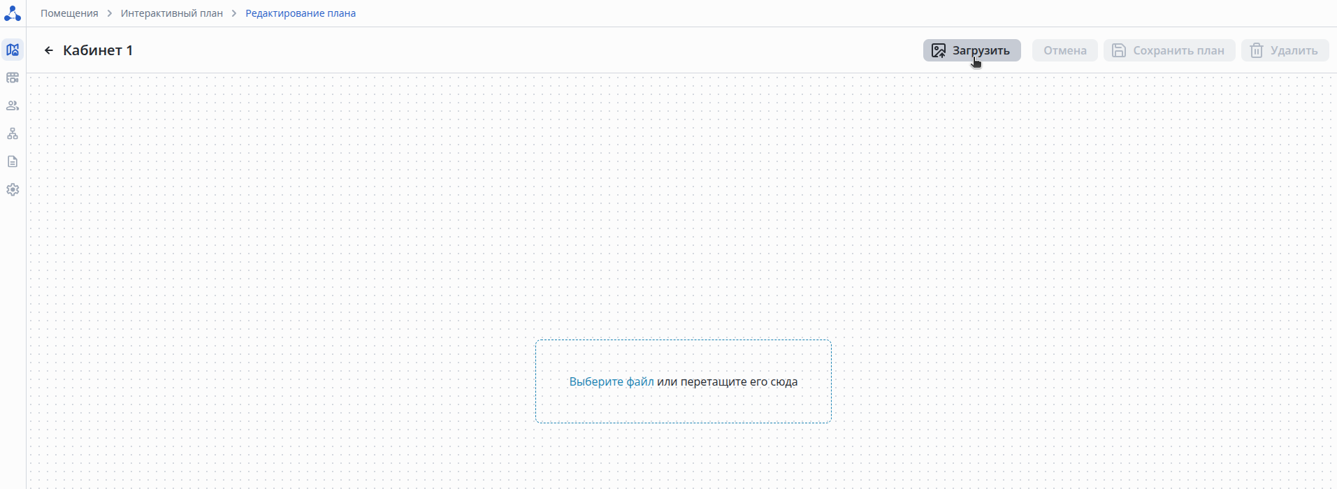 На появившемся экране нажмите кнопку Загрузить или Выберите файл и выберите файл с изображением плана с вашего компьютера.