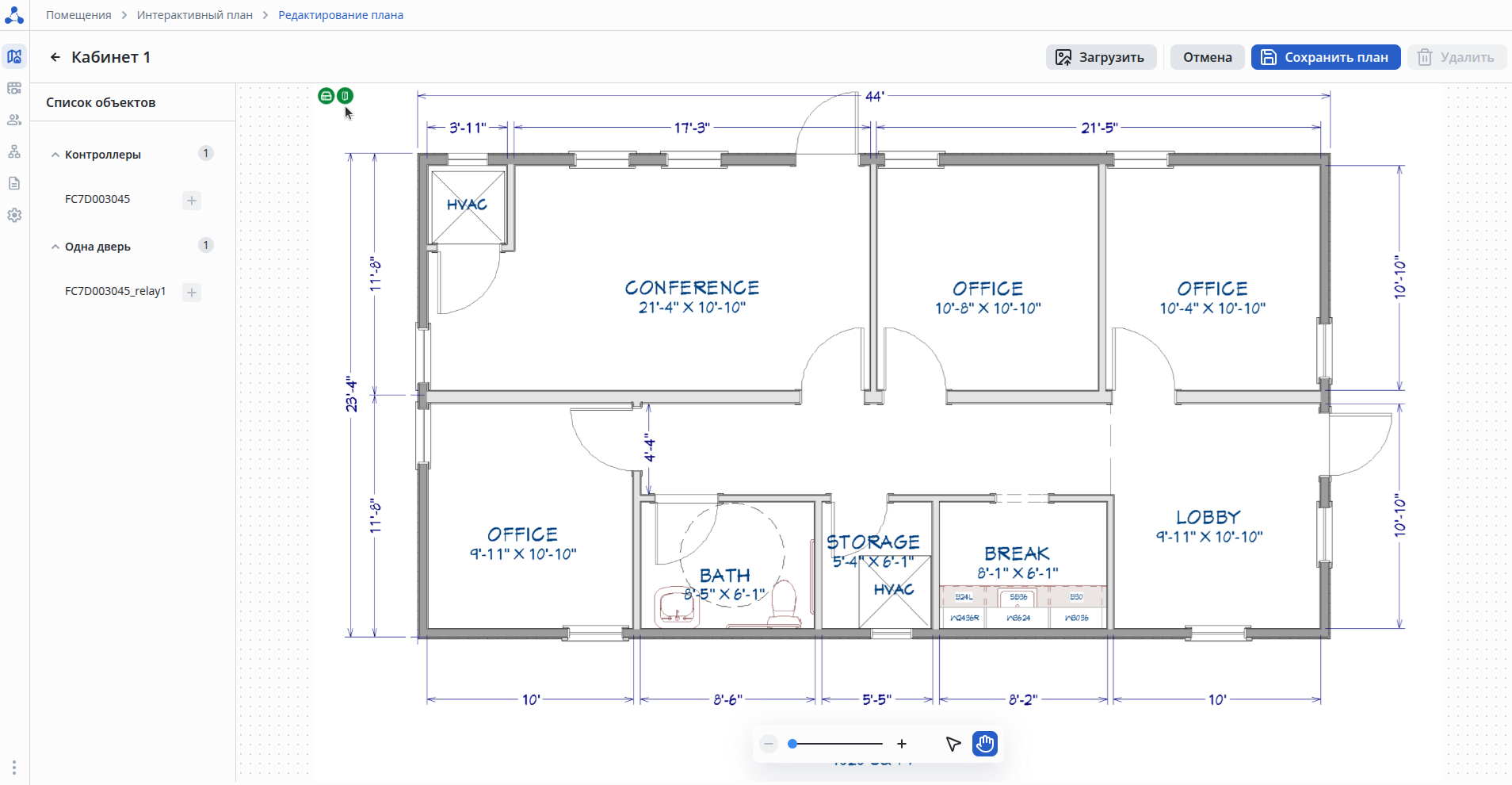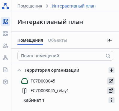 Для добавления объекта на интерактивный план нажмите на кнопку + рядом с объектом.