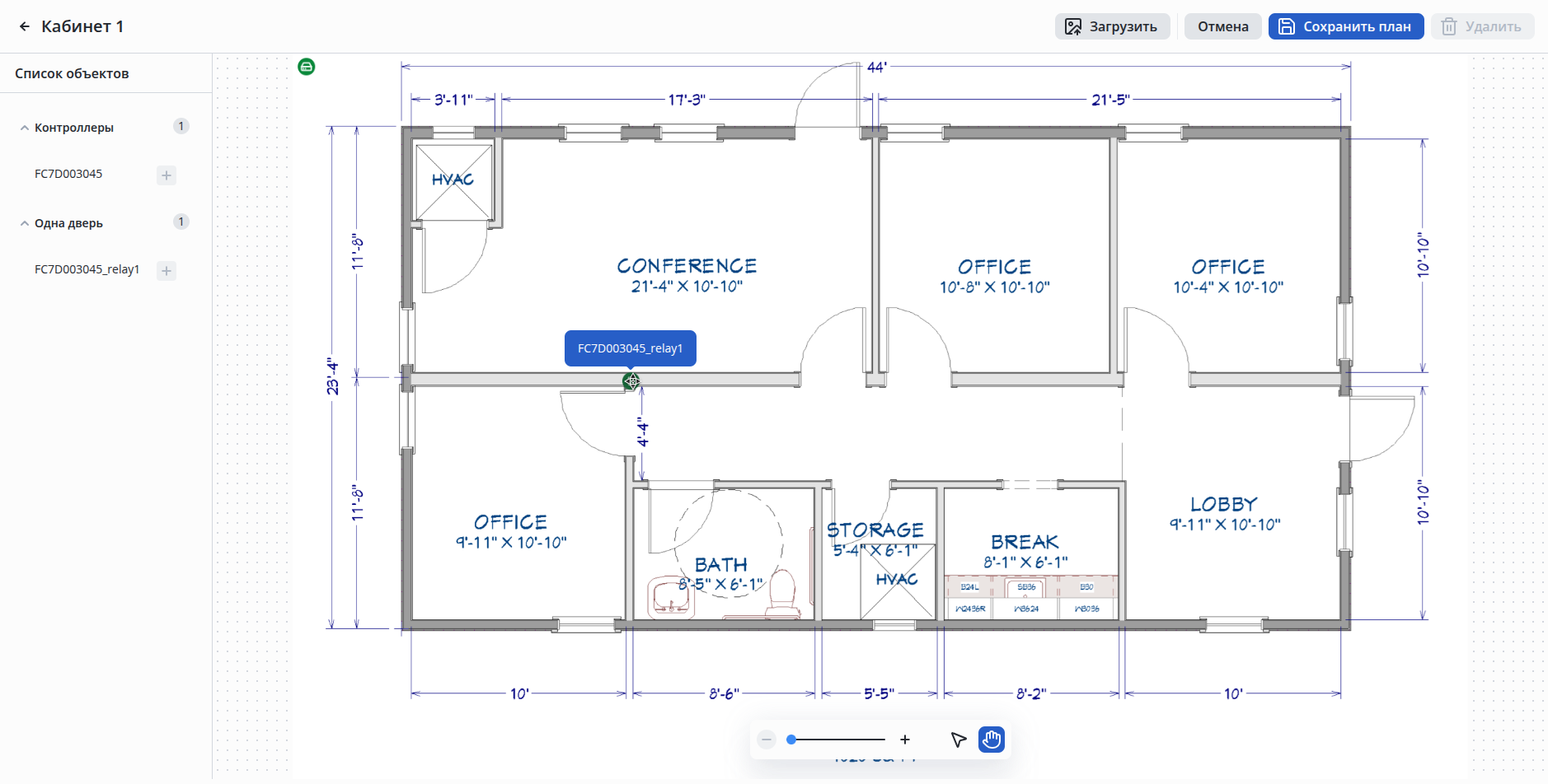 Страница служит для организации мест доступа, управления реле и контроллерами, и постановке устройств на охрану.