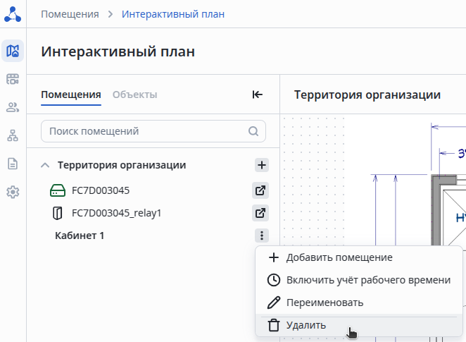 Для удаления помещения нажмите на троеточие и выберите пункт Удалить.