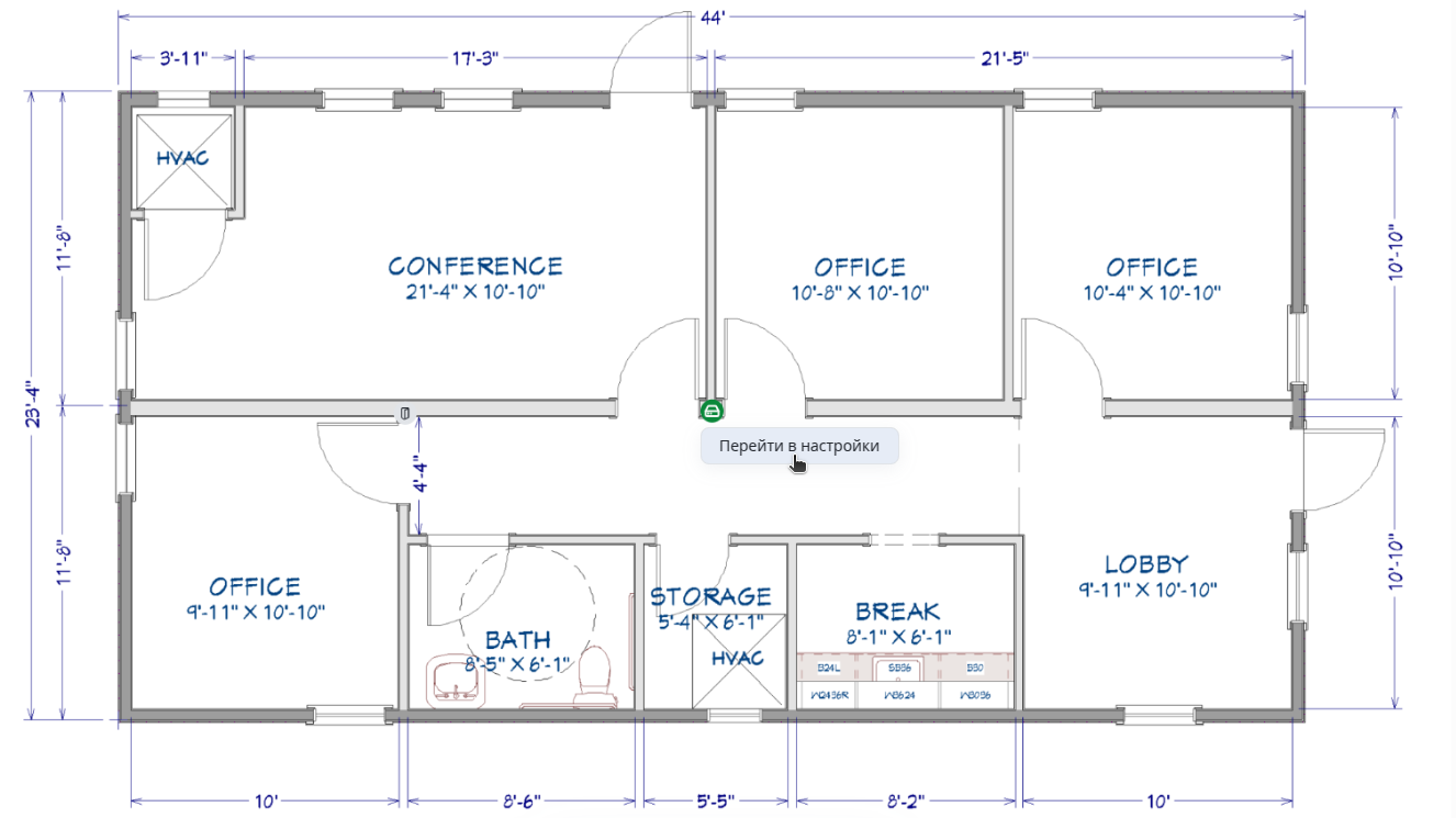 Наведите курсор на объект и переместите его в нужное место на плане.
